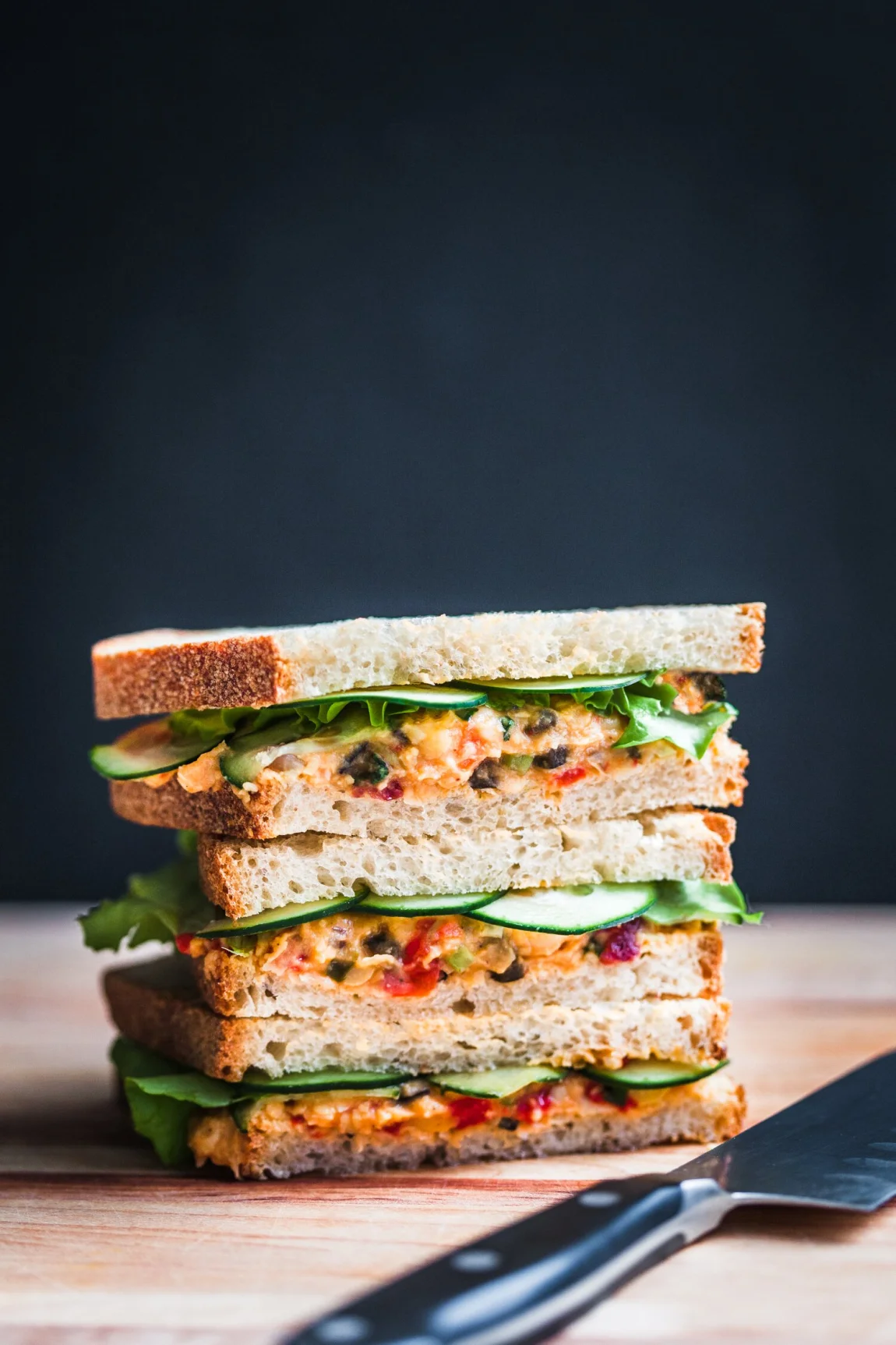 The chickpeas are mashed and dressed with buffalo sauce, lemon juice, mustard, etc., and bulked up with pieces of roasted red pepper, olives, red onion, celery, and dried cranberries (which provide perfect little pockets of sweetness). Most of the ingredients here are pantry items for us/things that we almost always have in the fridge, so this type of lunch-saver is always at an arm’s reach. Maybe that’s the case for you as well? We hope you’ll give this one a try :)