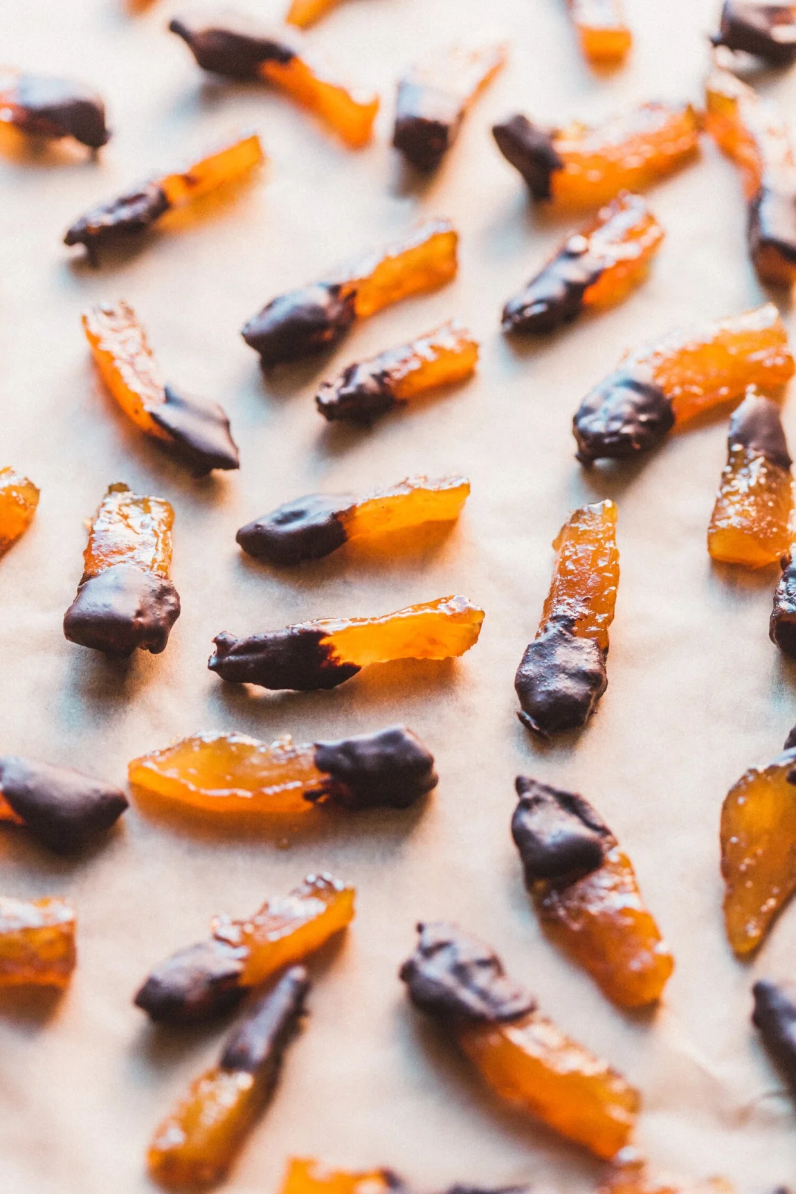 - Meanwhile, melt the chocolate chips on a double boiler. Dip each citron strip into the chocolate, so that it's about half way covered. Transfer back to the drying rack. Once you've dipped all the citron strips in the chocolate, transfer the whole rack to the refrigerator to let the chocolate harden. Keep the candied citron refrigerated in an airtight container. Enjoy!