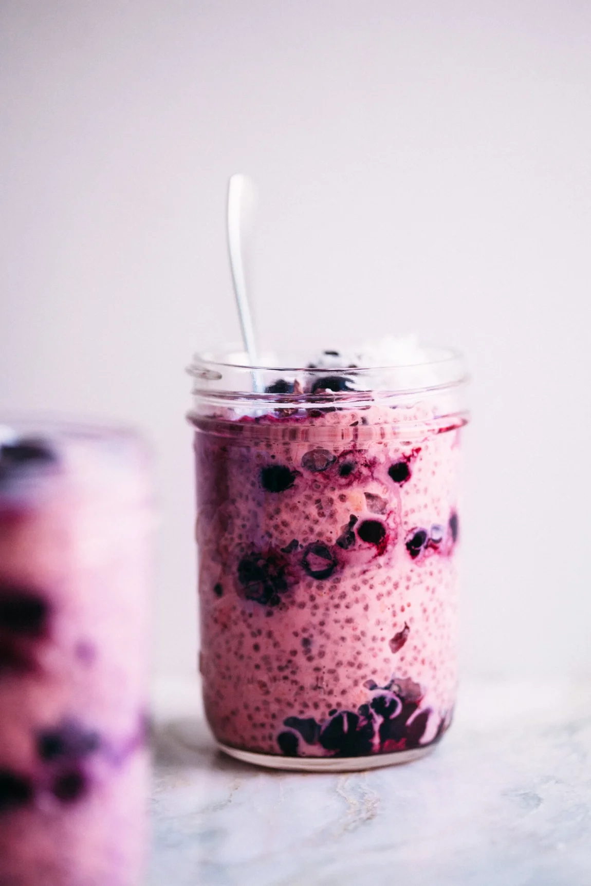 - Combine the oats, chia, and cacao nibs in a large bowl and mix. Pour in the pink walnut-coconut milk, and mix it in until the mixture thickens. Distribute the mixture between single serving-size mason jars or bowls, layering it with the berries/fruit. Cover, place in the refrigerator, and let sit overnight or for at least 2 hours for the oats to soak and the chia to bloom. Enjoy in the morning, sprinkled with more shredded coconut, if desired. These oats should keep well in the refrigerator for 4-5 days.
