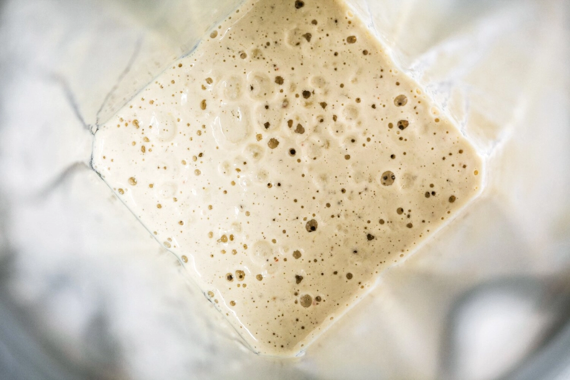 - In an upright blender, combine the drained cashews with ¾ cup water, garlic, lemon zest (reserve some for garnishing), lemon juice, nutritional yeast, pepper, red pepper flakes if using, and a generous pinch of salt. Blend until very smooth. Taste for salt and adjust if needed, the sauce should be fairly salty.