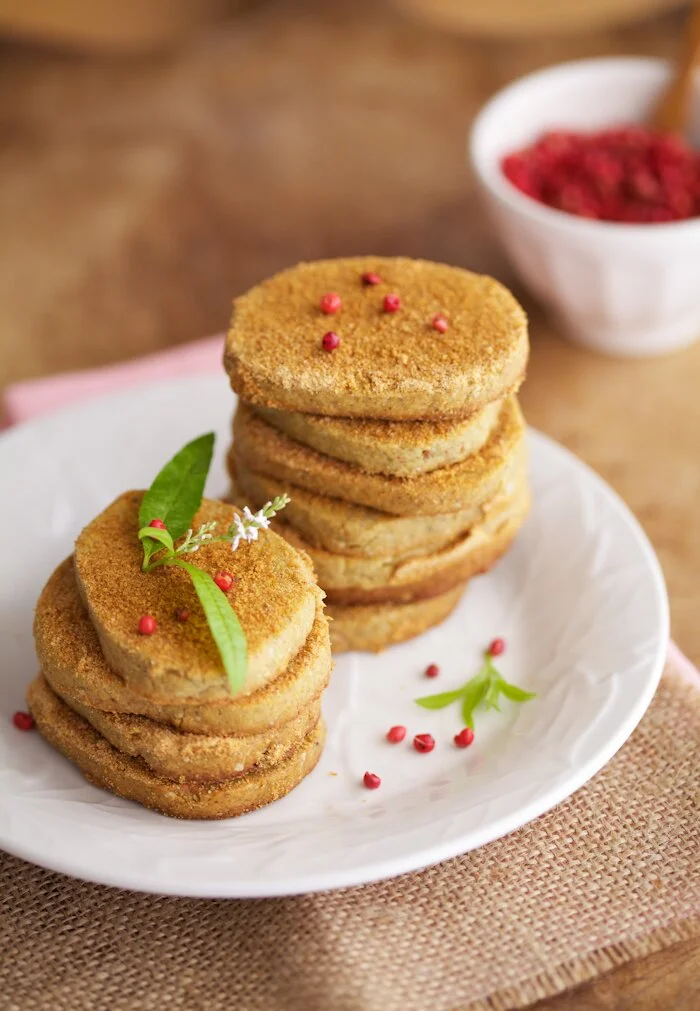 Pink peppercorns have become somewhat of an obsession for me lately. They are so good on almost anything – in savoury dishes, as garnish for creamy soups, sprinkled on salads, and as an aromatic, spicy addition to a dessert. In these cookies, the combination of ingredients is mind blowing, the flavour is unlike anything I’ve ever tasted before. I tweaked Aran’s recipe a little by adding pumpkin seeds instead of pistachios and substituting regular butter with nut butters and ghee. Lately, I’ve been experimenting with adding ground pumpkin seeds in place of some flours in baked goods, and I’m really loving the results. Another thing that I’ve been making regularly is pistachio butter. Like any nut butter, it’s easy to make with the help of a food processor and is wonderful on its own or added to baked treats.