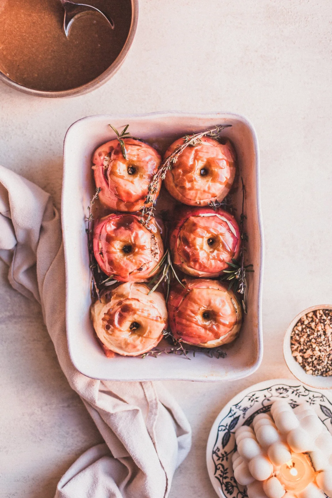Poppyseed Dukkah-Stuffed Baked Apples with Coconut Caramel