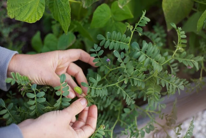 A few friends were regulars at this garden and offered some much needed planting help and advice. Certain things turned out to be easier to grow than I thought and others – (cucumbers!) – not so much. I was curious about the appearance of the garbanzo plant, so I sprouted and planted some garbanzo beans, ending up with a plant that blooms purple and sports small, individual garbanzo pods. We’ve also had success with sweet peas, green beans, tomatoes, broccoli, eggplants, and herbs (chocolate mint!).