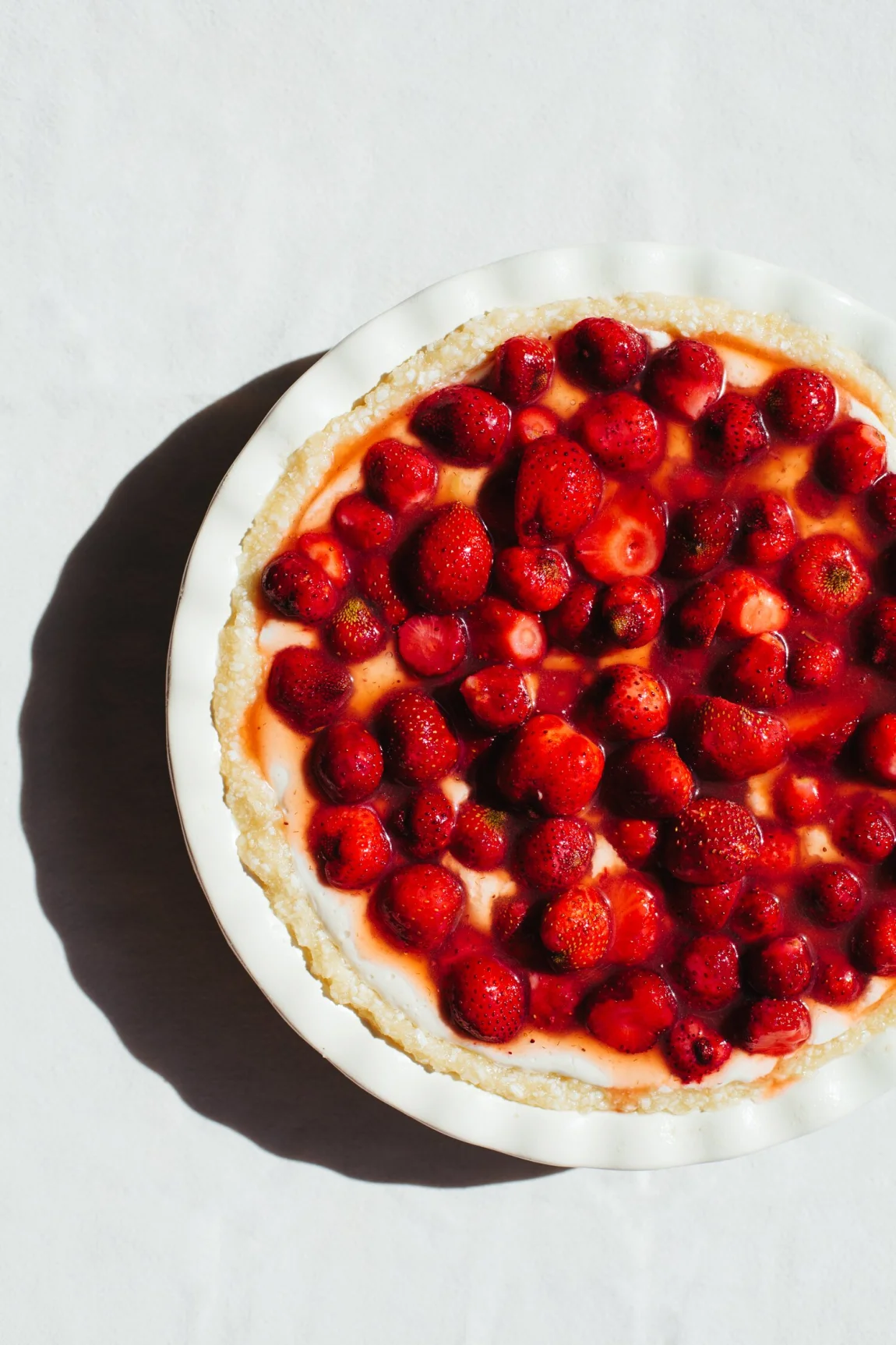 I’ve been wanting to make a coconut cream pie for a long time, but held off until I could figure out a way to make it a bit more noteworthy than just a veganized version of the traditional. Crowning the pie with these beautiful strawberries seemed like the perfect special touch, so I went for it. This pie is nothing short of heavenly. The juiciness of the macerated berries marries so well with the rich, creamy pie base. Think of the perfection that is berries and cream. It’s also worth mentioning that this is an entirely no-bake affair, so if you make this pie in the summer, you won’t need to worry about any oven heat. If you don’t feel like following the recipe for the strawberry topping, you can just top the pie with really good fresh strawberries, or combine your strawberries with a bit of sugar and let them sit to quickly macerate, then proceed to top. I’ll leave you with some wishes for a warm spring and an abundant strawberry season :)