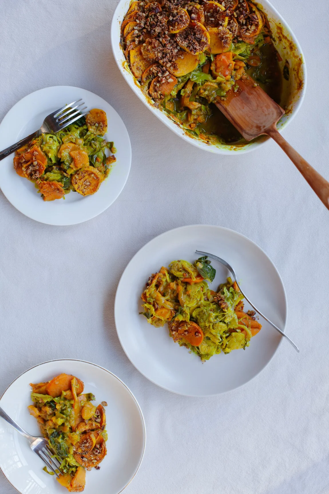 Sweet Potato and Brussels Sprout Gratin