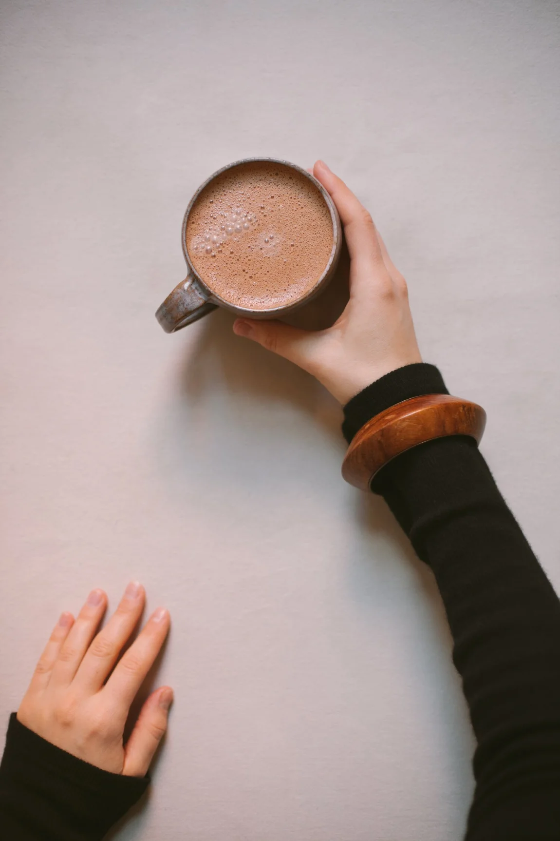 Most of us know that feeling that usually rolls around at around 3 pm on a workday, when it seems as if you’ve hit a wall and need to somehow recharge before going back to work. I have to say that since I’ve been taking a break from caffeine, it has been less a of a crash and more a need to get up, stretch and whip up some kind of fun potion in the blender, just as a mental breather. Since it’s been cold out, I’ve been really into making hot, frothy, restorative drinks as my 3 pm activity, and this super quick tahini hot chocolate has come out on top many times.